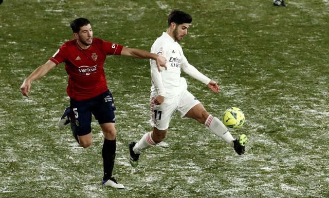 皇马全场最明确的一次得分机会是阿森西奥在下半场的一脚抽射,力量很大但角度有些正,被门将埃雷拉勉强扑了出去。没过多久,齐达内少见地失去耐心,用巴尔韦德和马里亚诺换下了阿扎尔和阿森西奥。从阿森西奥的脸上不难看出疑惑和失望的神情,媒体也奇怪:刚来电怎么就拔线了?因奥萨苏纳在那几分钟也逼得紧,齐达内想让几个能跑的球员从正面冲击对方防线。效果就是双方在进攻上都得到一些解放,但主队的机会显然更好一点,要不是大家临门一脚都有些发僵,皇马很有可能雪地翻车。